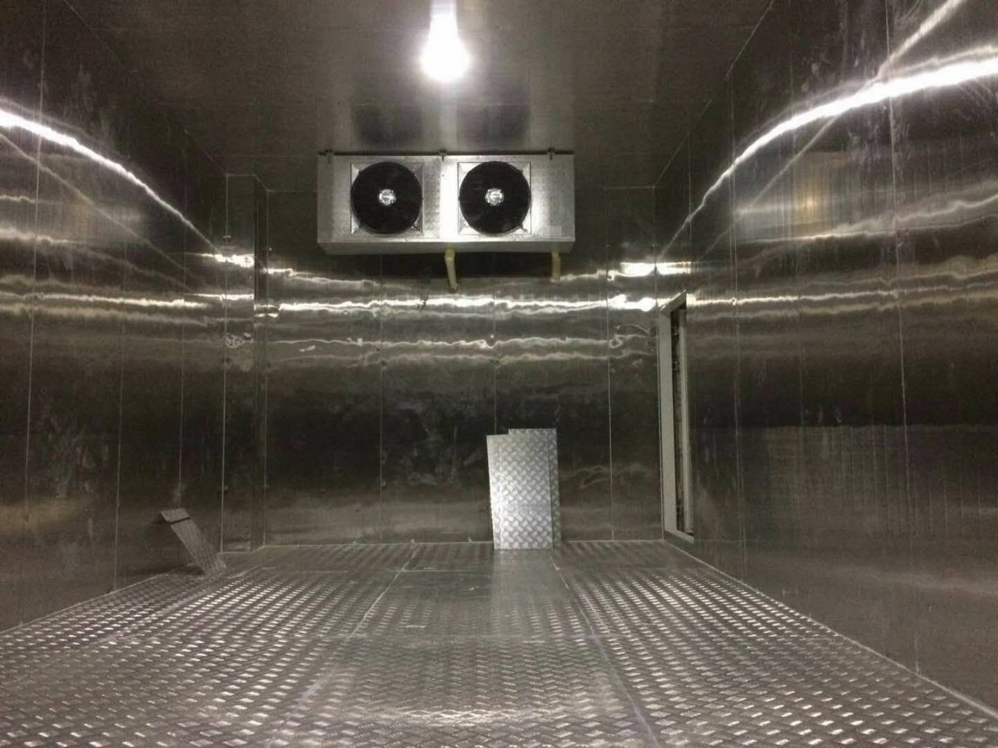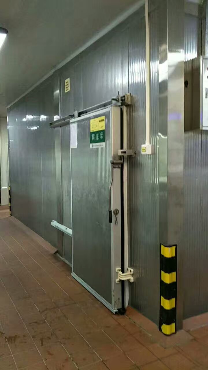 冷庫工程名稱: 湛江市金小小食品有限公司面包速凍冷庫 冷庫概況: 該速凍庫由廣州利鳴機械科技有限公司承建,冷庫庫容為30立方,儲藏產(chǎn)品:面包 產(chǎn)品尺寸:10cm*60cm*8cm,產(chǎn)品進庫溫度:常溫,冷庫速凍時間:90分鐘; 速凍后的產(chǎn)品中心溫度:-18度。 庫體采用雙面不銹鋼15cm聚氨酯冷庫板,機組采用北京比澤爾20匹雙級水冷機組, 冷風機采用高翔定制型DJ140水沖霜不銹鋼冷風機