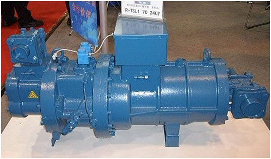 螺桿式壓縮機 是一種回轉式容積式壓縮機。它利用螺桿的齒槽容積和位置的變化來完成蒸氣的吸人、壓縮和排IqJ過程。無油螺桿壓縮機在本世紀三十年代問世,主要用于壓縮空氣。后來汽缸內噴油的螺桿式壓縮機出現,性能得到提高,噴油式螺桿壓縮機已是制冷壓縮機中主要機種之一。螺桿式壓縮機分為雙螺桿和單螺桿兩大類,雙螺桿壓縮機習慣上稱為螺桿式壓縮機。